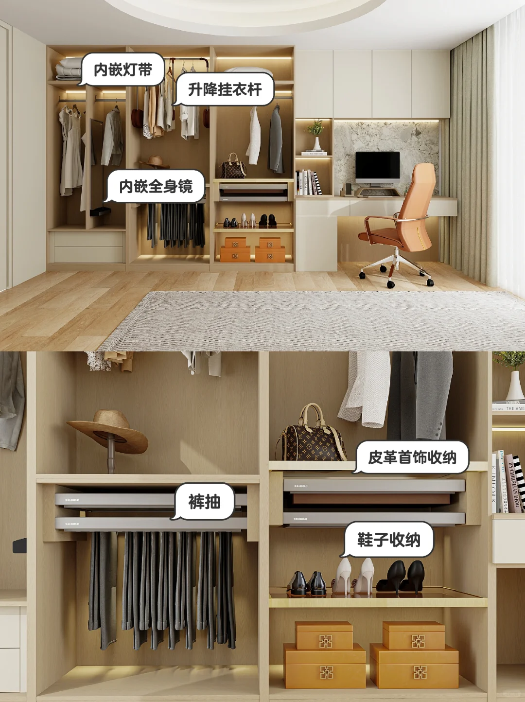 ??到頂衣柜,書桌無桌腳,都是極致利用空間的細(xì)節(jié)設(shè)計。