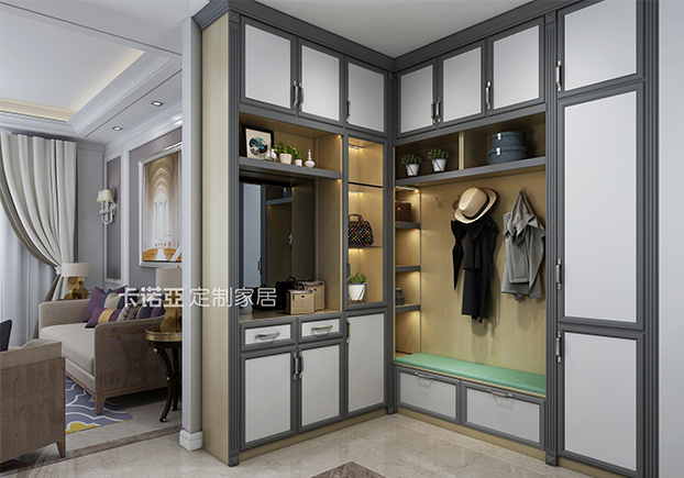 為了防止空間不足,設(shè)計(jì)師做了到頂處理,開(kāi)放空間用于放置傘、手表之類的出門必備物品。