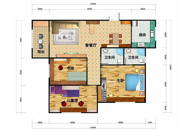 而且,書房這樣規(guī)劃還有一個(gè)好處是,以后兄弟倆長(zhǎng)大了,希望有自己的房間時(shí),書房即使不做整改,也能作為一個(gè)房間使用了。