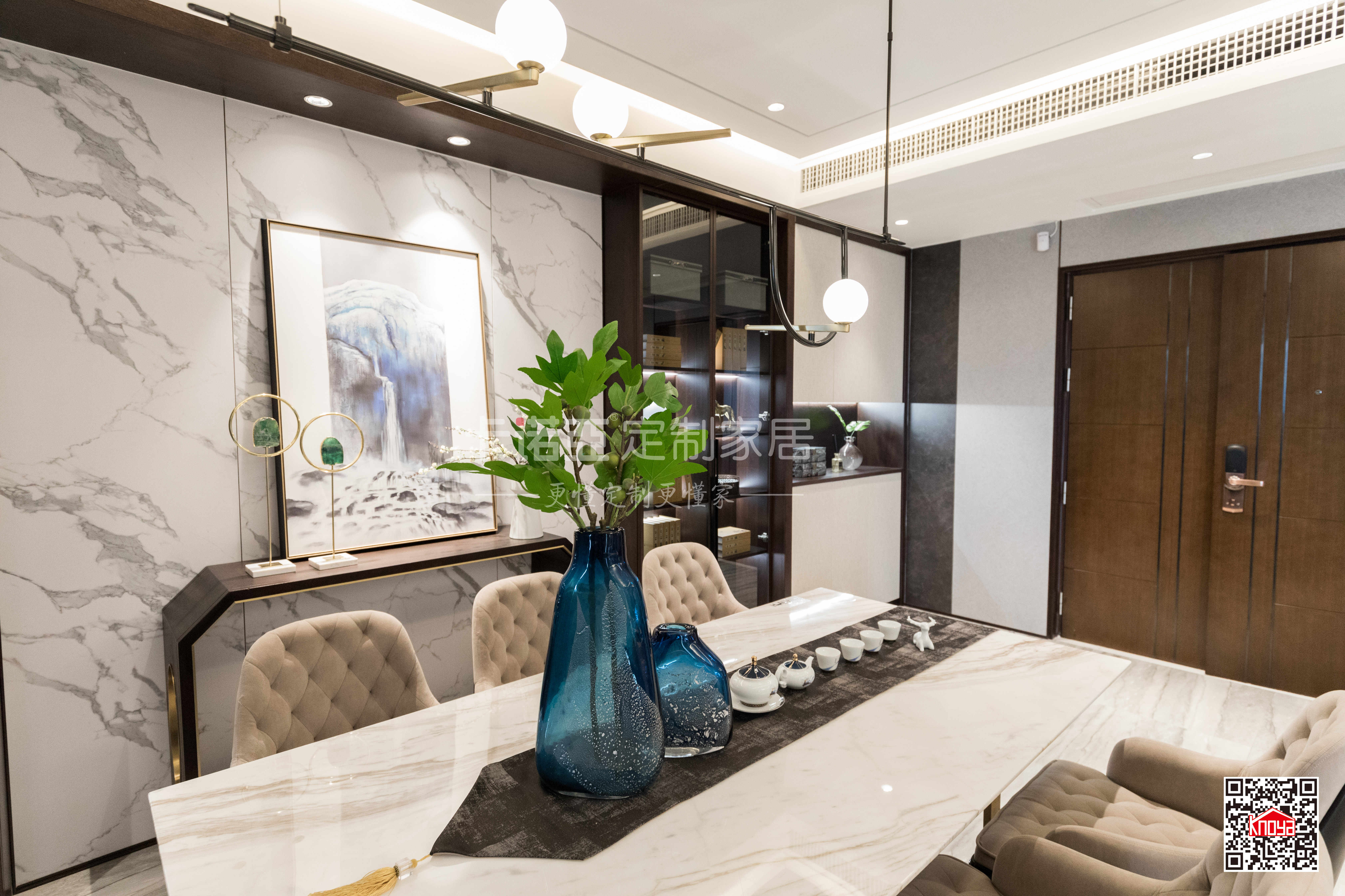 軟裝:玄關(guān)SH-B2039b、大理石餐桌CZ022、餐椅CY018、吊燈MP-8013L、窗簾CL033、首飾盒DS-SJ230、藝術(shù)畫LTF-19010032、大小花瓶CF2211/CF2212、五金蓋套2箱、香薰、花器、茶具、桌旗等