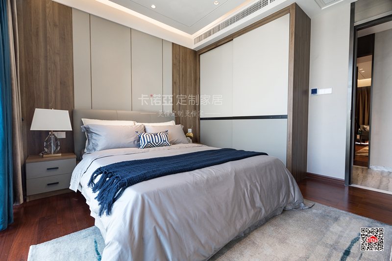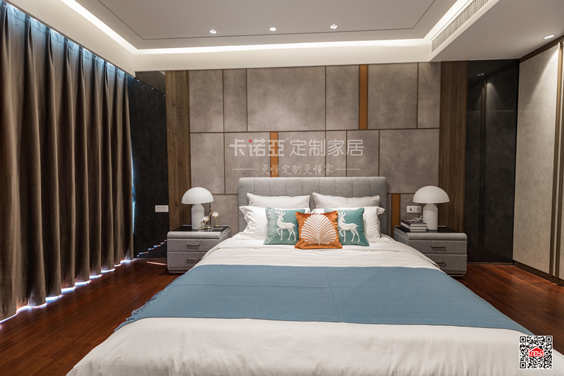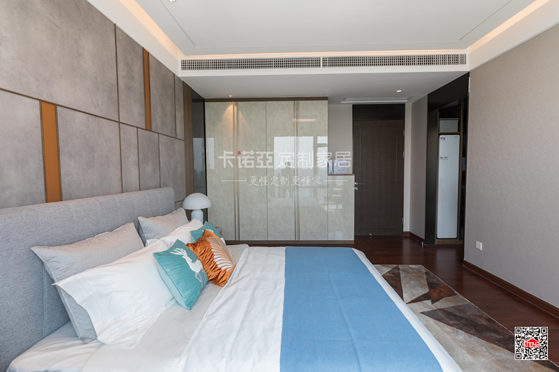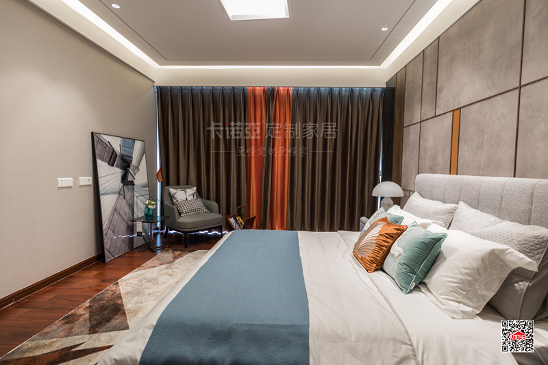 雖然主調(diào)是簡約風,但是臥房整體自帶奢華感。