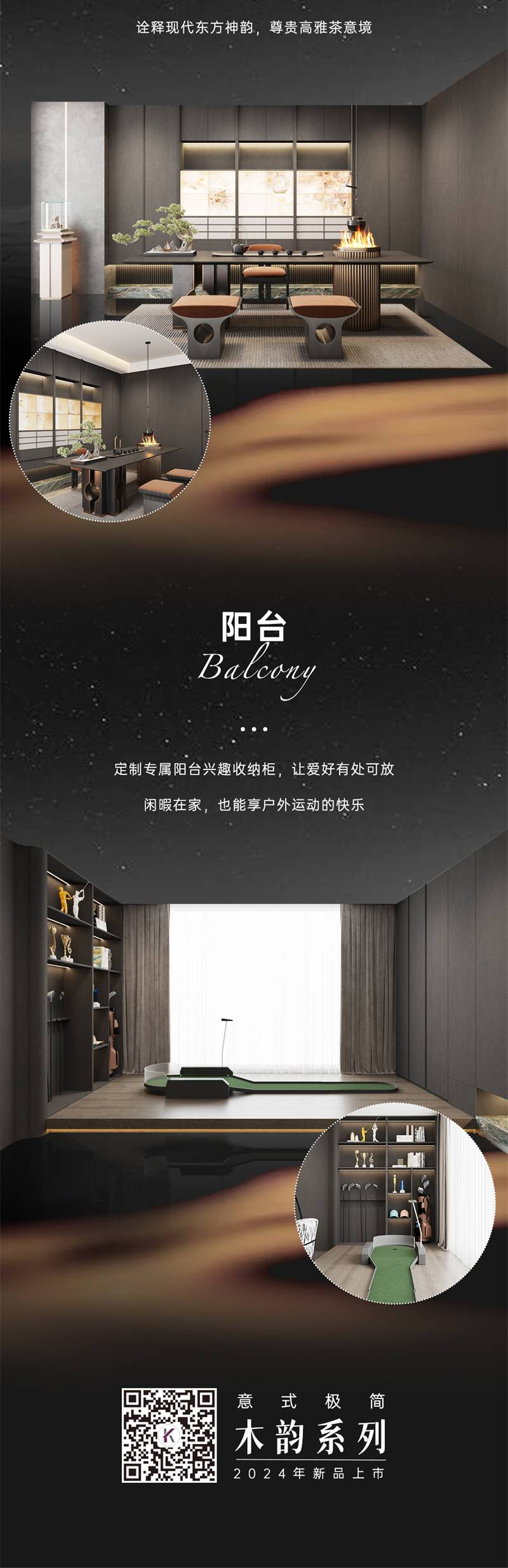 2024年新品系列,木韻 |意式極簡人群定位:70~80后,企業(yè)家,公司高管;追求高科技、高品質生活;重視獨特性、功能性定制專屬陽臺興趣收納柜,讓愛好有處可放閑暇在家,也能享戶外運動的快樂