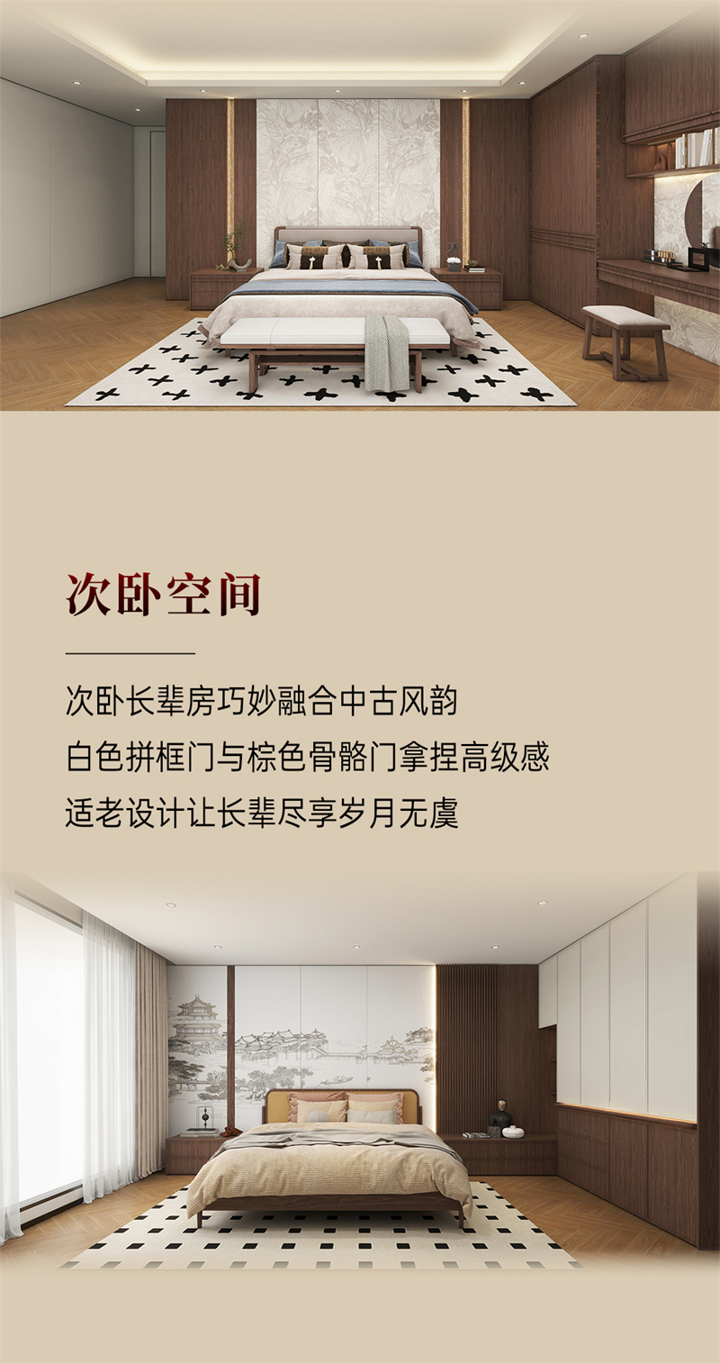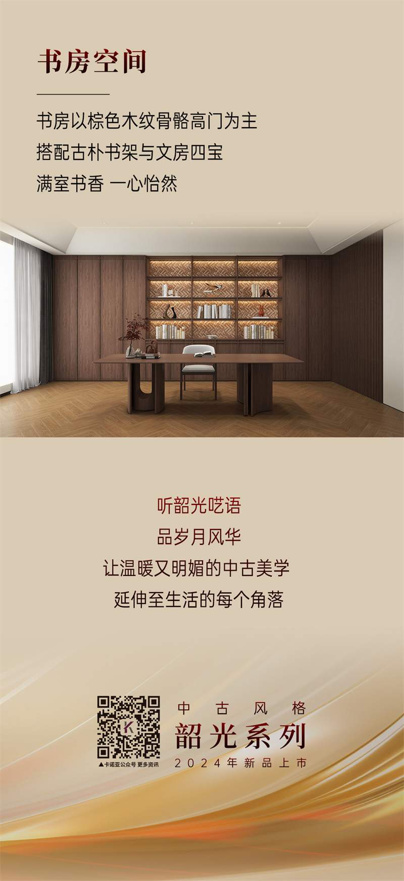 棕色胡桃木紋為主色調(diào),搭配白色暗紋,細膩的藤編門與硬朗的骨骼門讓人聯(lián)想到古老的家具,
