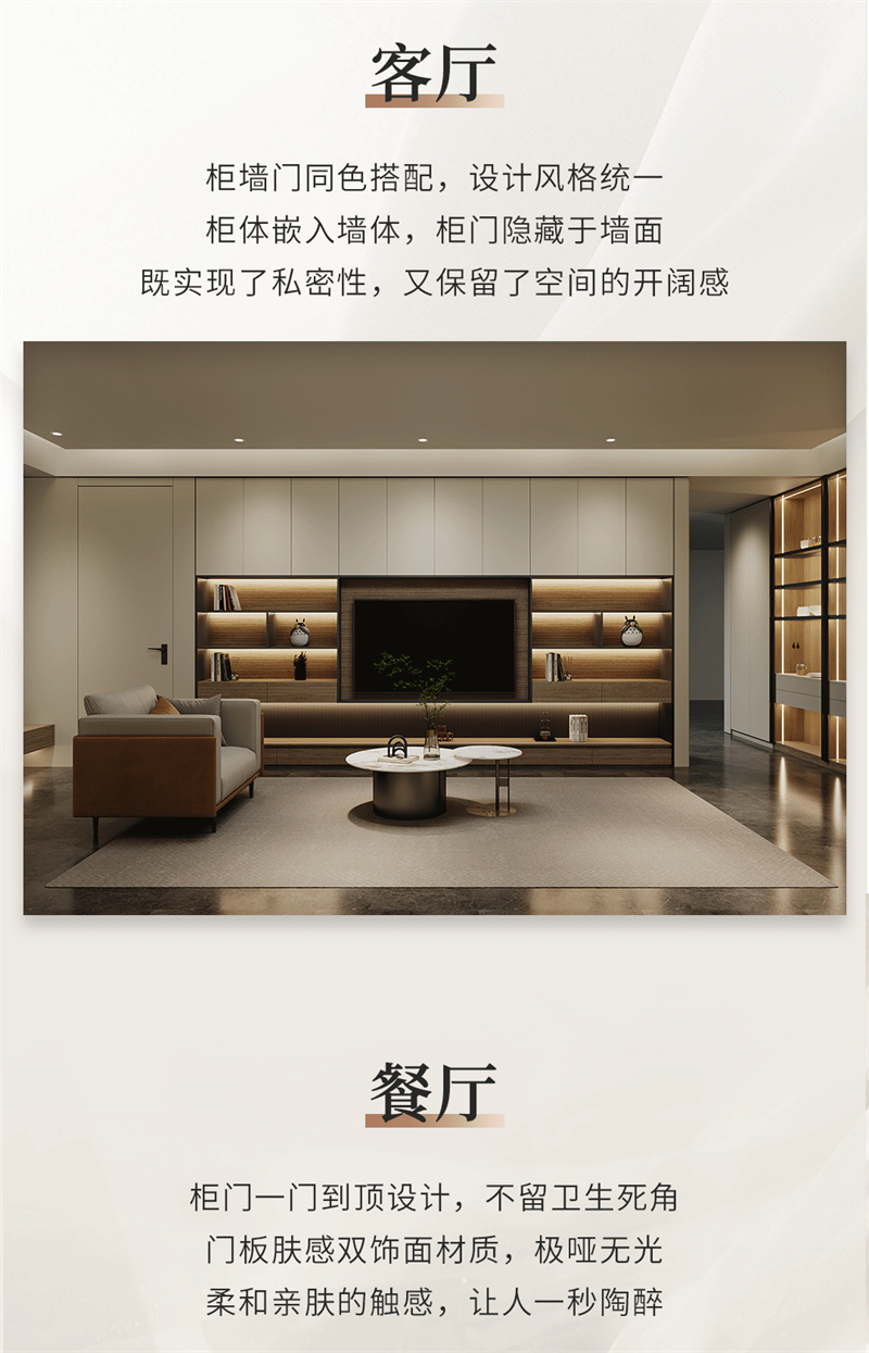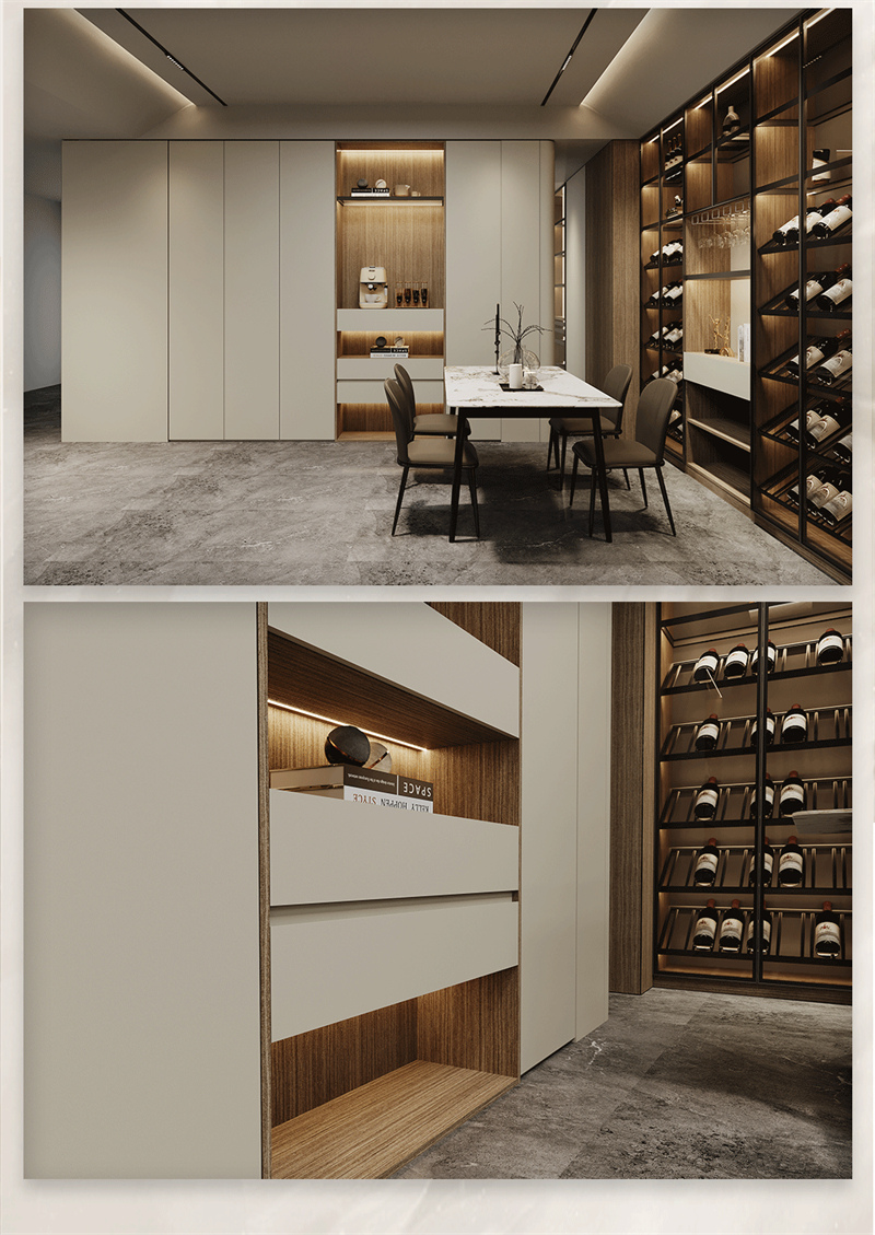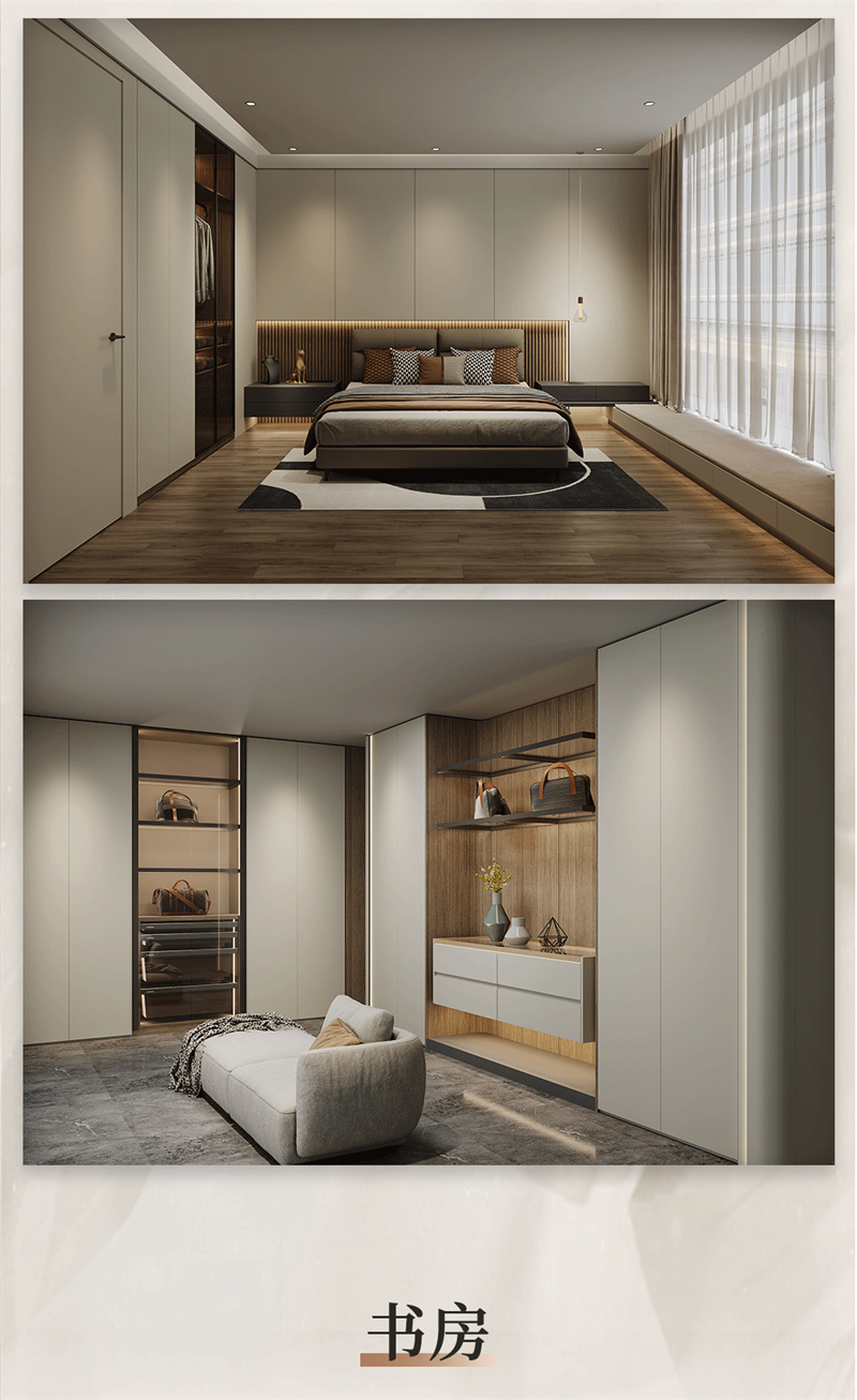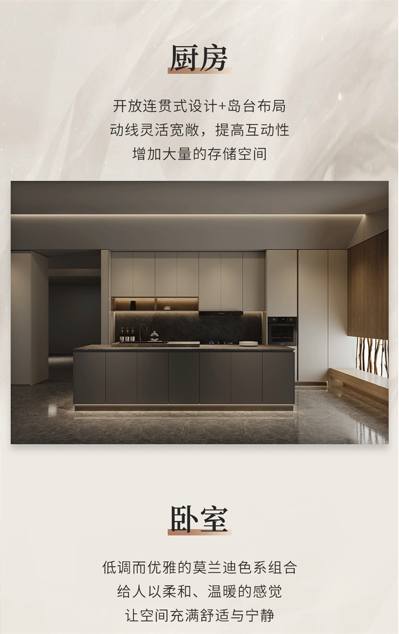 融合意式極簡(jiǎn)的設(shè)計(jì)手法,黑白、金屬與木制在此交融,精致的弧形線條簡(jiǎn)約而大氣,搭配大地色系營(yíng)造出安靜優(yōu)雅的氛圍,低飽和度啞光色彩的搭配,呈現(xiàn)自然溫馨的空間。