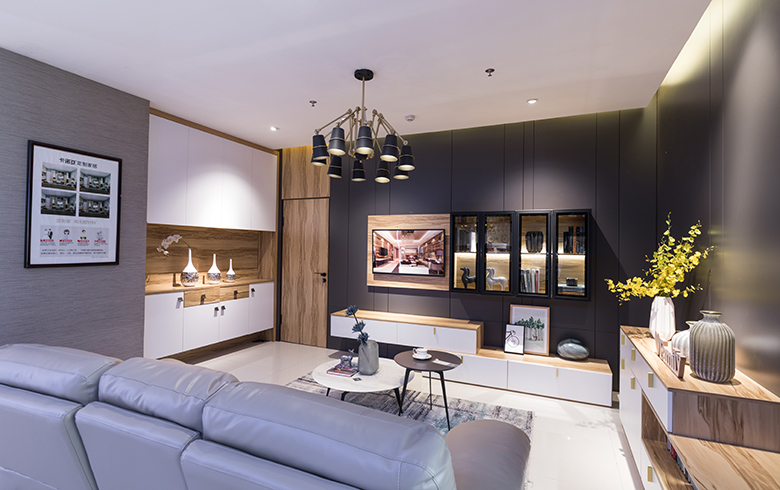 多格局分區(qū),非完全對(duì)稱(chēng)電視柜,既增大收納空間,同時(shí)更具視覺(jué)美感。無(wú)拉手電視柜、儲(chǔ)物柜,配以高級(jí)灰皮沙發(fā),為空間帶來(lái)滿(mǎn)滿(mǎn)質(zhì)感。