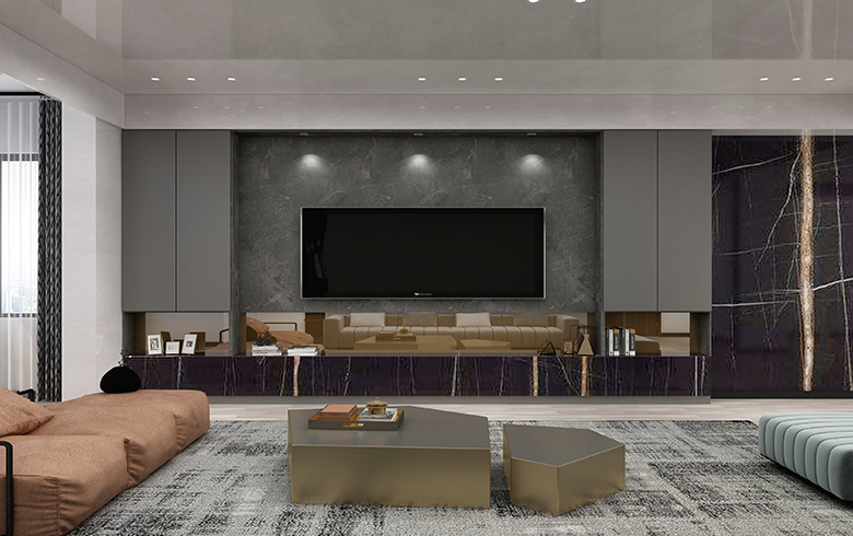 本案為碧桂園·天薈265平大平層的現(xiàn)代極簡風格案例。現(xiàn)代派的極簡主義在滿足功能的基礎上,不斷的做減法, 反對形式化和裝飾化,拋棄不必要的細節(jié)而強調(diào)物體本身的美,主張功能化和理性化的設計理念,加上對材料和色彩的考究、運用,在設計師的偏執(zhí)喜好里,掀起對“黑的溺愛”的藝術思潮。