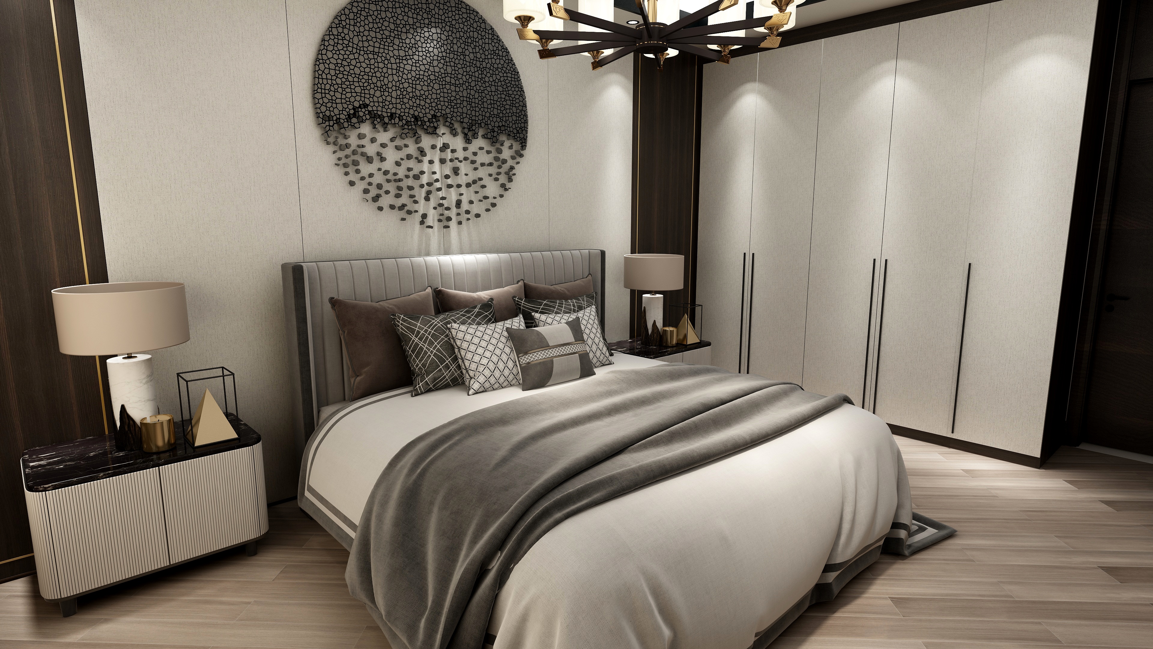 東方美學,意向為先。“居繁華而藏遠山”,山水,是物理空間,亦是內(nèi)心境界;“聽煙雨而見流云”,云雨,是自然物語,亦是人格化身;“運墨氣而萌五彩”,水墨,是具象色彩,亦是想象靈泊。該方案化繁為簡、形隨機能,使藝術(shù)融入生活。能讓居者面對都市飛快的生活節(jié)奏,感受在夜幕降臨歸家后享受這份安寧的美好時光,真正書寫屬于居住者的璟頌?zāi)焊琛?/p>