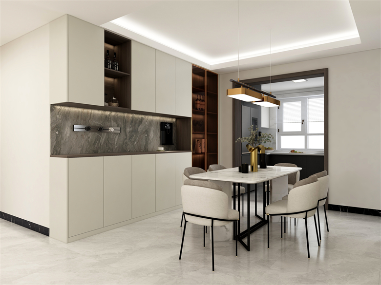 “泊”一般泛指淡泊、恬靜,”舍”就是代表自己的家。所以我希望讓客戶在任何時間回到家里,都能感覺到放松。讓忙碌一天的身體回到家中,瞬間卸下防備。設計理念:取意生活,藝術(shù)喚新。整家之美|第五屆卡諾亞杯全國家居空間設計大賽