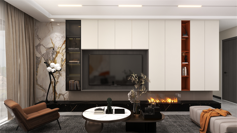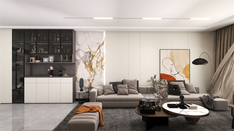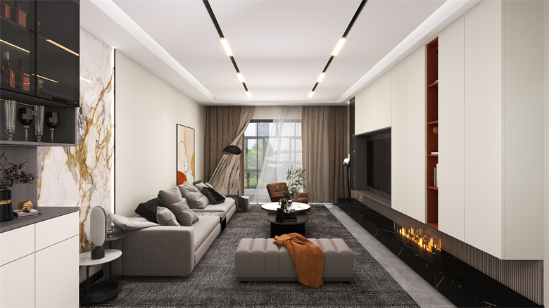 本案以現(xiàn)代簡約風(fēng)格出發(fā),整個空間以純白色的空間感搭配上舒適自然的家居布置,橙色的細節(jié)點綴讓空間顯得更加高級大氣,營造出一種輕松自然的家居氛圍感。