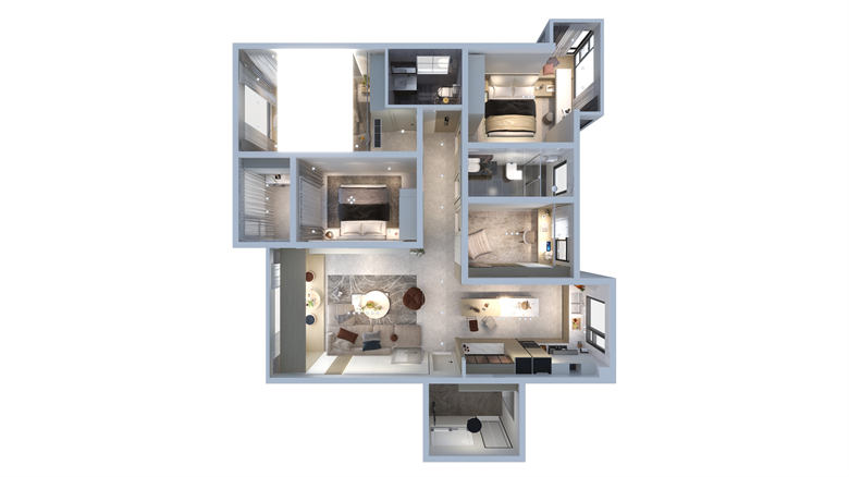 本作品是為解決一家人的生活需求所創(chuàng)作。作者希望在紛擾的世界有每個(gè)人都有屬于自己的一方天地,讓家的意義更明顯。讓房間產(chǎn)生溫度的不僅是收納,功能,顏值,還有對(duì)生活和家的熱愛(ài)。