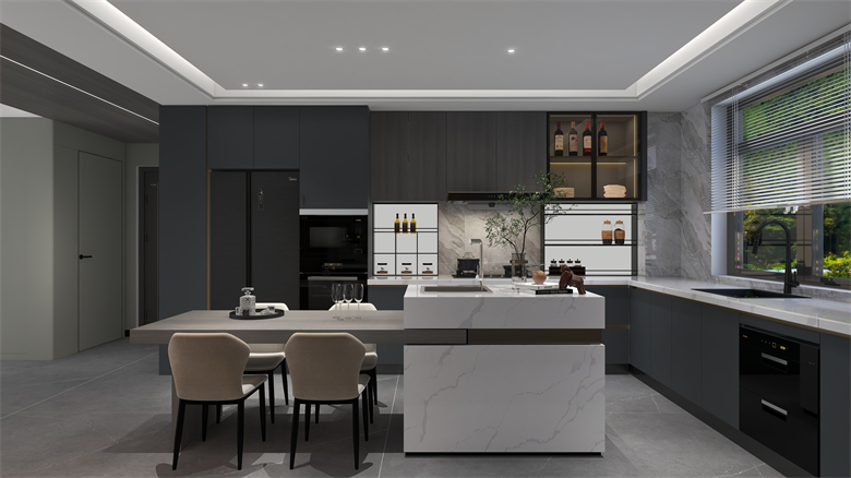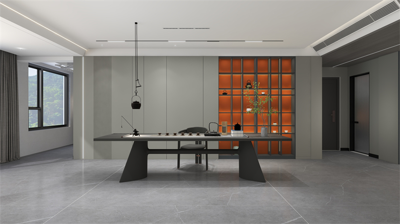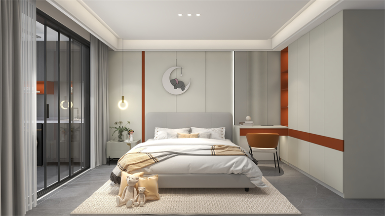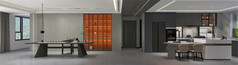本案以現(xiàn)代極簡(jiǎn)風(fēng),采用黑白灰的色彩基調(diào),三色過渡簡(jiǎn)單自然,彼此映襯,讓人置身于一種靜謐的家居氛圍??臻g中的橙色點(diǎn)綴,仿佛一術(shù)光,照亮了整個(gè)黑暗,生活需要光的指引,只要我們不斷追逐,光永遠(yuǎn)在我們前方!