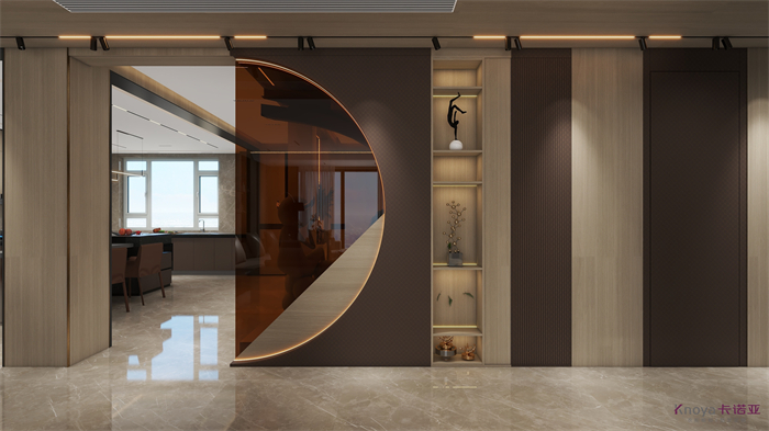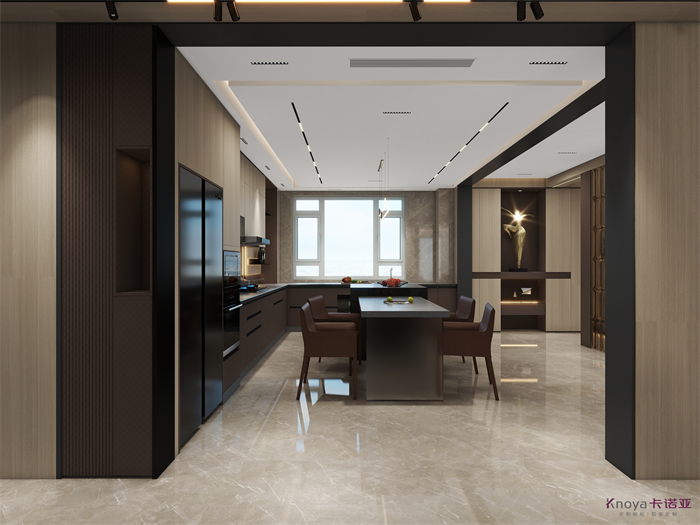 意式極簡既具有意大利文藝復(fù)興時期的意蘊(yùn),奢華高貴,同時又兼具現(xiàn)代感的干練高級,深棕色的木飾面搭配原木色穿插營造的高級感貫穿整個空間,利用材質(zhì)的對比與反差加強(qiáng)空間的質(zhì)感感受。優(yōu)雅與深邃的配色讓空間散發(fā)出靜謐感,簡約的線條在訴說永恒的經(jīng)典,脫離一切的浮華與煩躁。身居清雅地,心無車馬喧,從生活的本質(zhì)出發(fā),讓它靜下來,感受快節(jié)奏都市生活背后的安靜與寧靜。