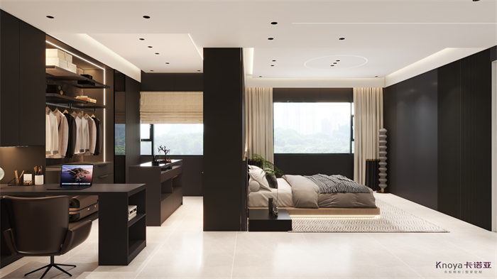 作品簡(jiǎn)介:整體以現(xiàn)代為主,入戶區(qū)域和酒水吧區(qū)域做環(huán)繞型設(shè)計(jì),整體更通透空間,客廳背景墻運(yùn)用了疊級(jí)的手法弱化承重柱,沙發(fā)背景同樣采用疊級(jí)做到呼應(yīng)的設(shè)計(jì),主臥拆除隔壁臥室做主臥步入式衣帽間,增加了主臥的靈動(dòng)以及空間,兒童房采用類似榻榻米手法設(shè)計(jì),整體做收納儲(chǔ)物學(xué)習(xí)娛樂空間,廚房做開放式廚房,整體色系為黑灰,天花吊頂采用無主燈加智能燈光,整體空間和氛圍舒適度拉滿。