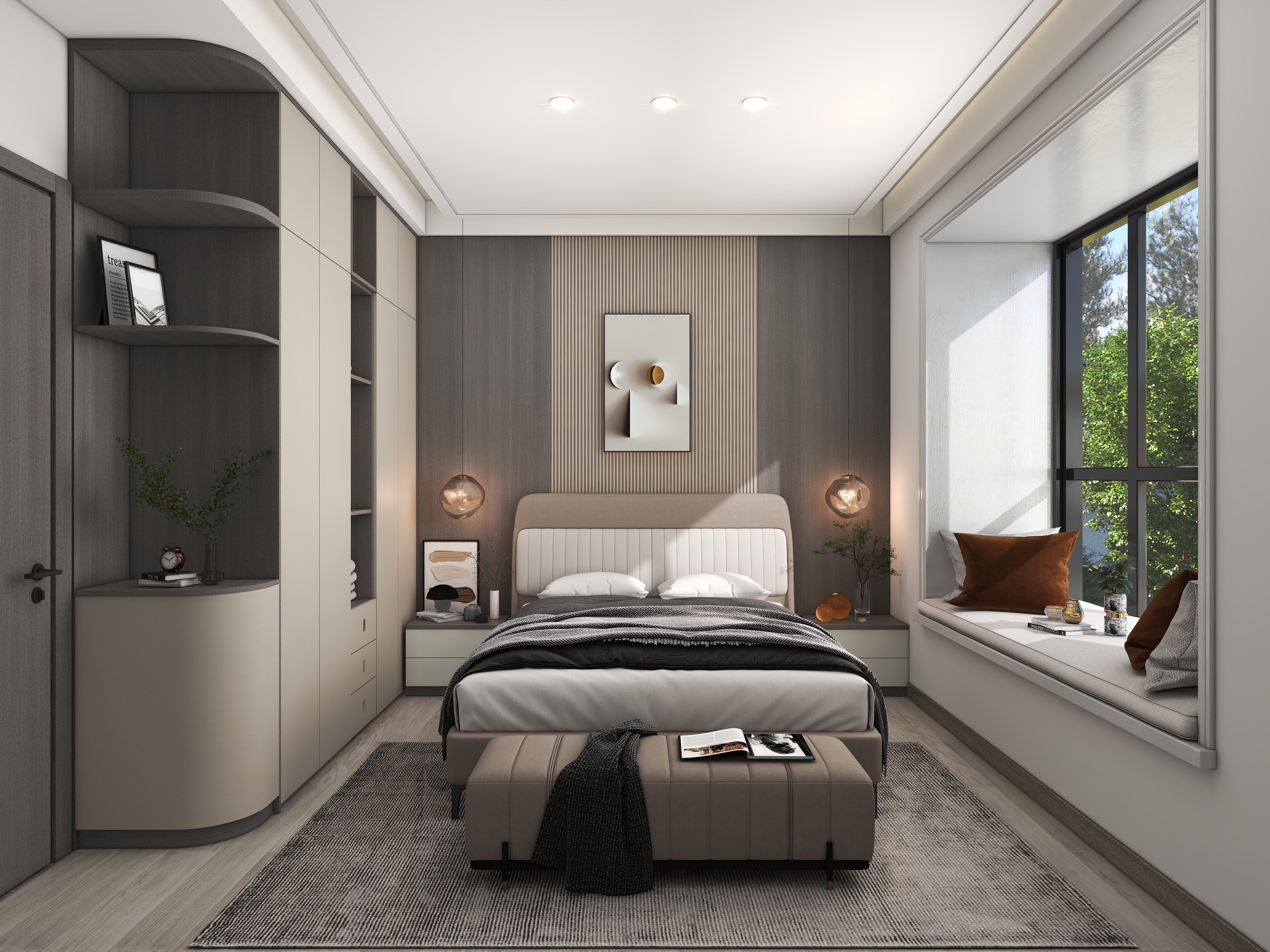 主臥是房屋主人的臥室,設(shè)計要圍繞主人的需求進行的,不僅要提供寧靜、舒適的睡眠環(huán)境,也是夫婦間的最親密溫馨的私密空間。