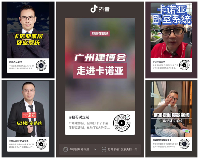 本屆建博會(huì),卡諾亞打通線上線下流量場(chǎng),橫向做輻射,縱向做滲透。以“卡諾亞臥室系統(tǒng)超級(jí)IP”為傳播主線,特邀抖音達(dá)人@旦哥說(shuō)定制、@娜仁格日勒、巖石哥@家居裝企、@家居二層樓、@苑說(shuō)定制、@胡鋒說(shuō)裝修,小紅書(shū)達(dá)人@ Snow雪芙、@愛(ài)生活的阿胖,以及權(quán)威媒體搜狐焦點(diǎn)家居、慧亞招商網(wǎng)、中華全屋定制網(wǎng)等紛紛前來(lái)卡諾亞展館,進(jìn)行專業(yè)探展與沉浸式體驗(yàn),以直播、短視頻等形式,集體為卡諾亞臥室系統(tǒng)背書(shū)。這些家居頂流KOL,展前利用短視頻打Call造勢(shì),展中第一時(shí)間多維度現(xiàn)場(chǎng)體驗(yàn)卡諾亞臥室系統(tǒng)的諸多亮點(diǎn),為卡諾亞臥室系統(tǒng)在建博會(huì)上強(qiáng)勢(shì)吸睛助力,展后則深度解析卡諾亞臥室系統(tǒng)作為切入點(diǎn),帶動(dòng)整家定制的全案服務(wù)與成交推廣的財(cái)富密碼。