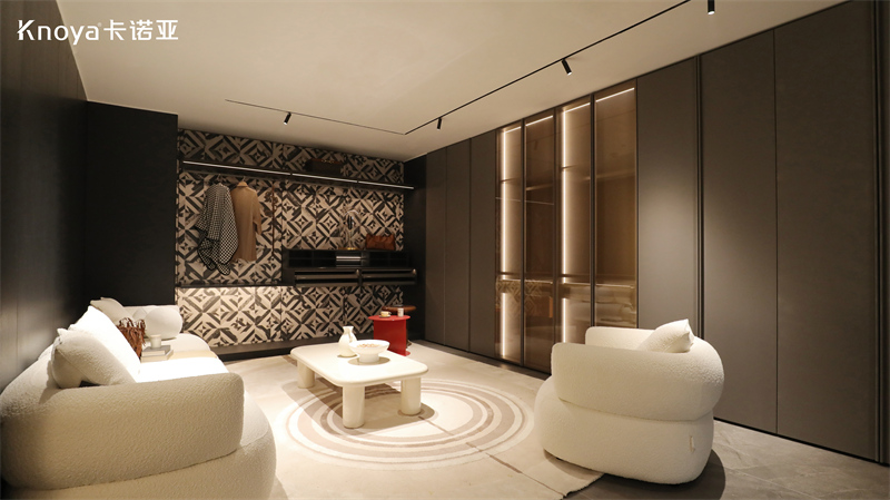 衣帽間空間,采用卡諾亞新品雅奢風(fēng)格星雨系列,演繹高端人居雅奢生活,沉浸享受精智空間,暢享居家儀式感,將生活舒適與當(dāng)代美學(xué)完美融合。