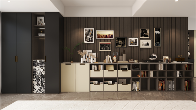 對于120㎡以上大戶型,羅亞注重“空間分區(qū)與風(fēng)格統(tǒng)一”,通過定制家具實現(xiàn)區(qū)域功能與美學(xué)調(diào)性的和諧。在開放式客餐廳,設(shè)計“餐邊柜+酒柜+展示柜”一體化造型,采用同色系板材與金屬線條勾勒,增強(qiáng)空間縱深感;在主臥套房,打造“步入式衣帽間+梳妝臺+床頭柜”完整系統(tǒng),根據(jù)衣物類型規(guī)劃掛衣區(qū)、疊放區(qū)、首飾區(qū),滿足精細(xì)化收納需求;在書房設(shè)計“隱形門書柜+升降桌”組合,關(guān)閉時是一面完整的書墻,打開后通往其他區(qū)域,兼顧私密性與整體感。
