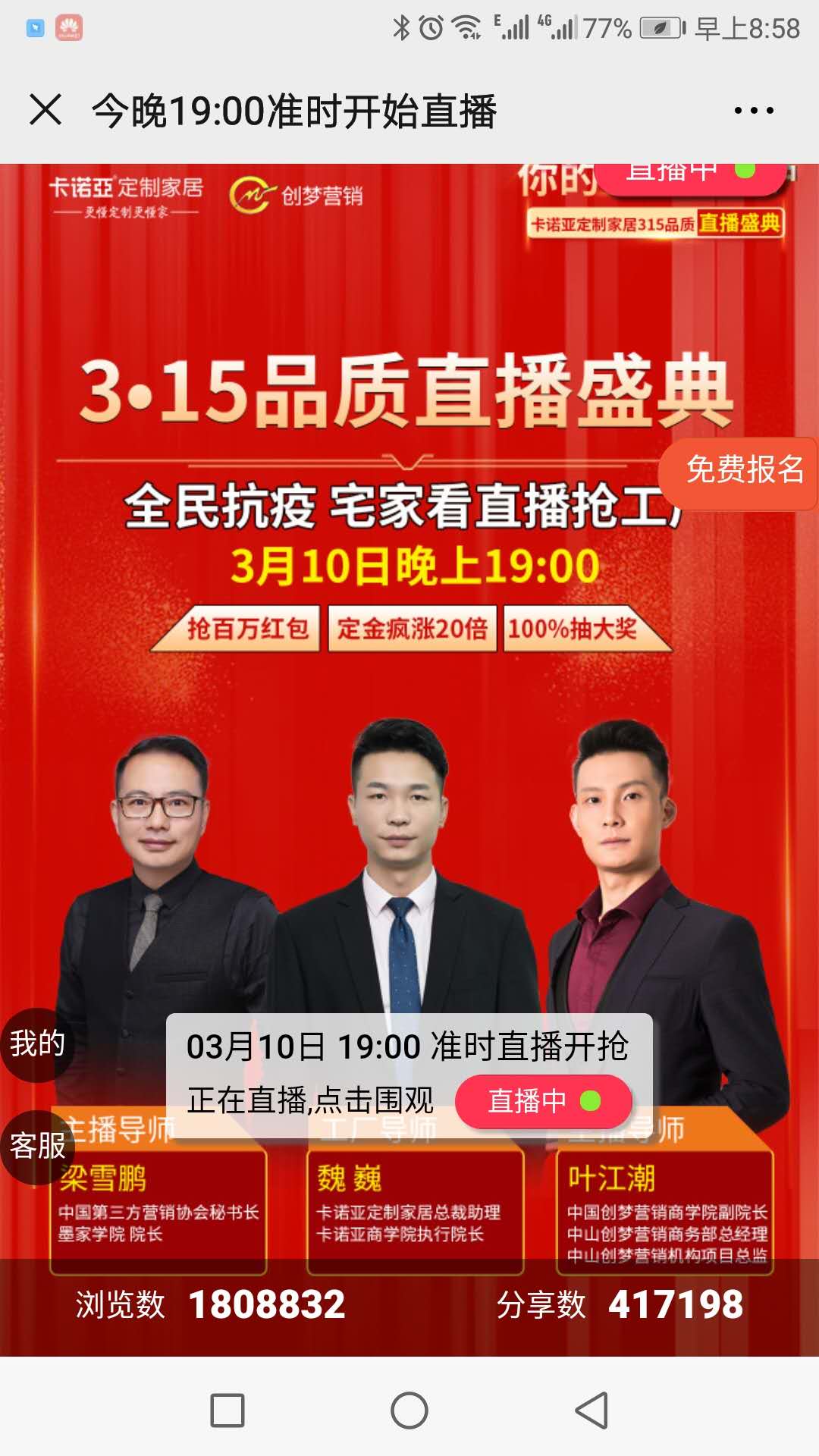 2月27日-3月10日共13天,卡諾亞開展了“你的家、我來守護——卡諾亞315品質直播盛典”活動,以180萬+的瀏覽數(shù)、在線訂單8278單、銷售總額逾3億的業(yè)績,再度刷新了行業(yè)直播營銷的戰(zhàn)績。