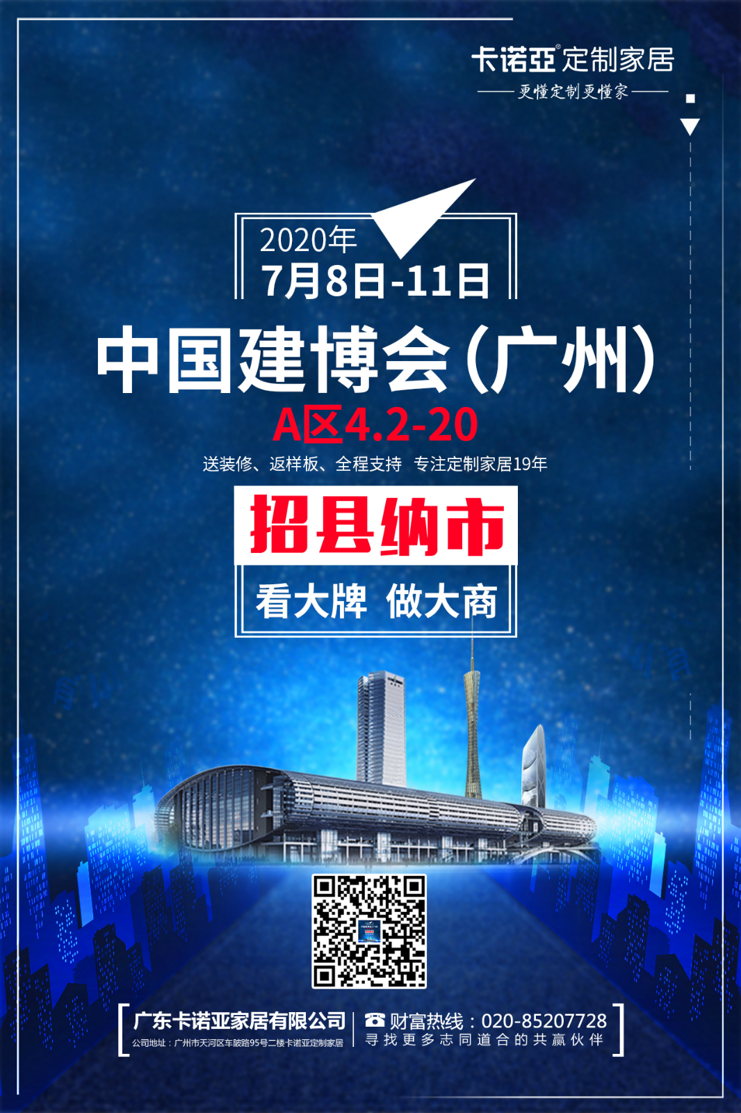 2020年7月8日,全國規(guī)模最大的第22屆中國(廣州)國際建筑裝飾博覽會就要開幕了。那么,廣州建博會有什么看點,經(jīng)銷商們到展會后,究竟要怎么做才能大有收獲呢?外行看熱鬧,內(nèi)行看門道,參加廣州建博會多年的老朋友“卡諾亞定制家居”,在此分享看展會的門道,讓你在短短的4天時間里,高效快速鎖定適合自己的品牌,同時能夠不枉此行,學到干貨,滿載而歸。