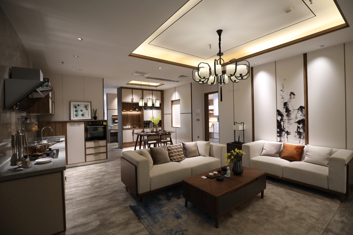 客餐廳一體化設(shè)計(jì),敞開式的空間,從客廳到餐廳再到廚房,沒有距離感。統(tǒng)一的材質(zhì)和色調(diào),讓家更加整整齊齊,結(jié)構(gòu)上又主次有序,彰顯出新中式傳統(tǒng)與現(xiàn)代的完美融合,點(diǎn)綴新生活的美好格調(diào)。