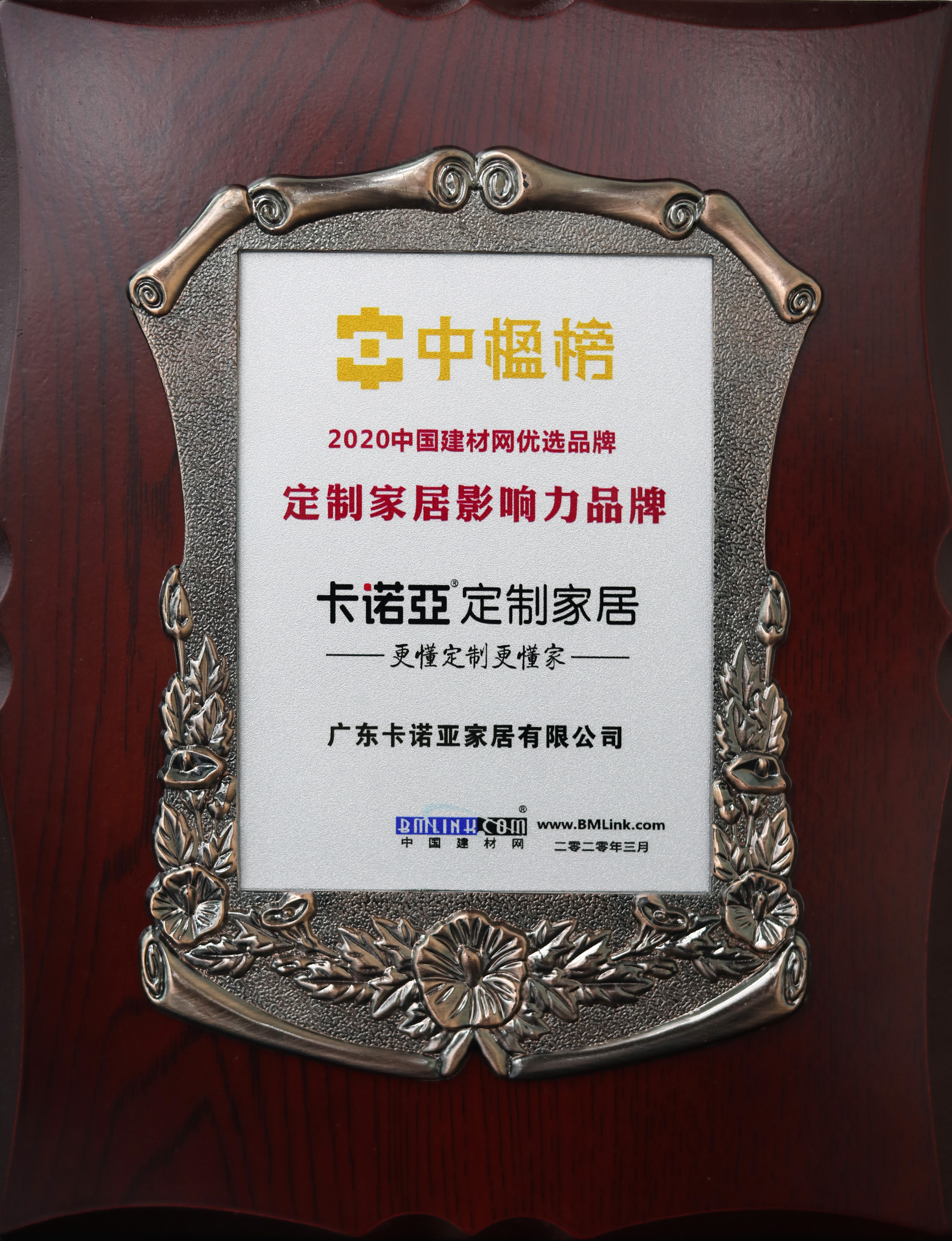 “中楹榜”甄選建材各界有分量的品牌,以中楹“中國美好生活家”的寓意,凝聚行業(yè)品牌,鼓勵(lì)、促進(jìn)建材行業(yè)的創(chuàng)新與發(fā)展。本次評選活動(dòng),卡諾亞在眾多定制家居企業(yè)中脫穎而出,榮獲“中楹榜”2020優(yōu)選品牌“定制家居影響力品牌”。