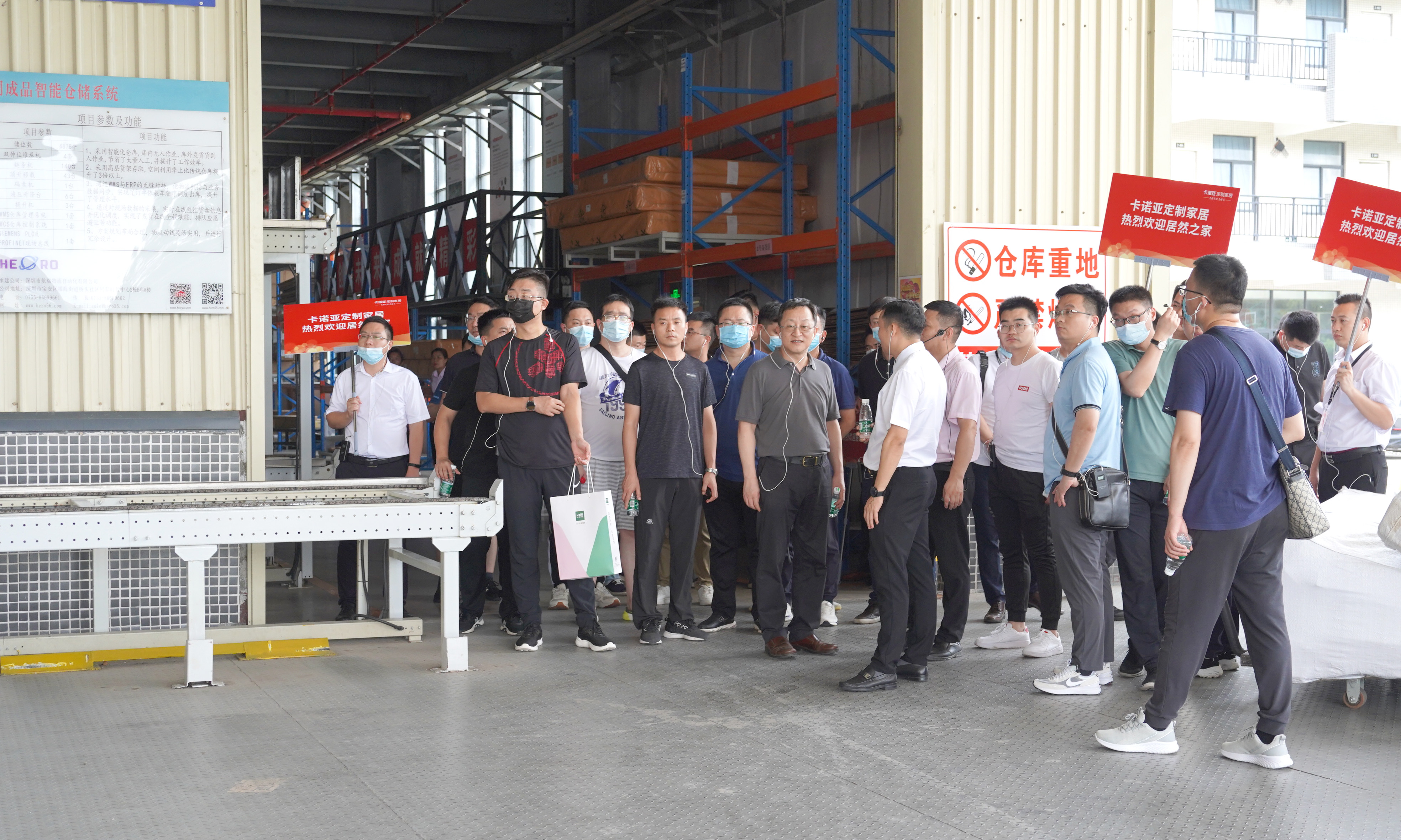 7月21日,居然之家河南分公司總經(jīng)理張健先生攜同河南各分店總經(jīng)理一行30多人,蒞臨卡諾亞定制家居清遠(yuǎn)工業(yè)4.0制造基地參觀考察交流??ㄖZ亞定制家居營(yíng)銷(xiāo)副總經(jīng)理李偉明等公司高層全程陪同,雙方就布局河南市場(chǎng)的合作事宜進(jìn)行深入的探討。