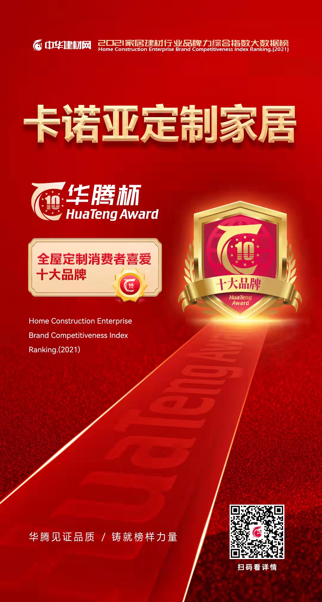卡諾亞定制家居榮獲“全屋定制消費(fèi)者喜愛十大品牌”