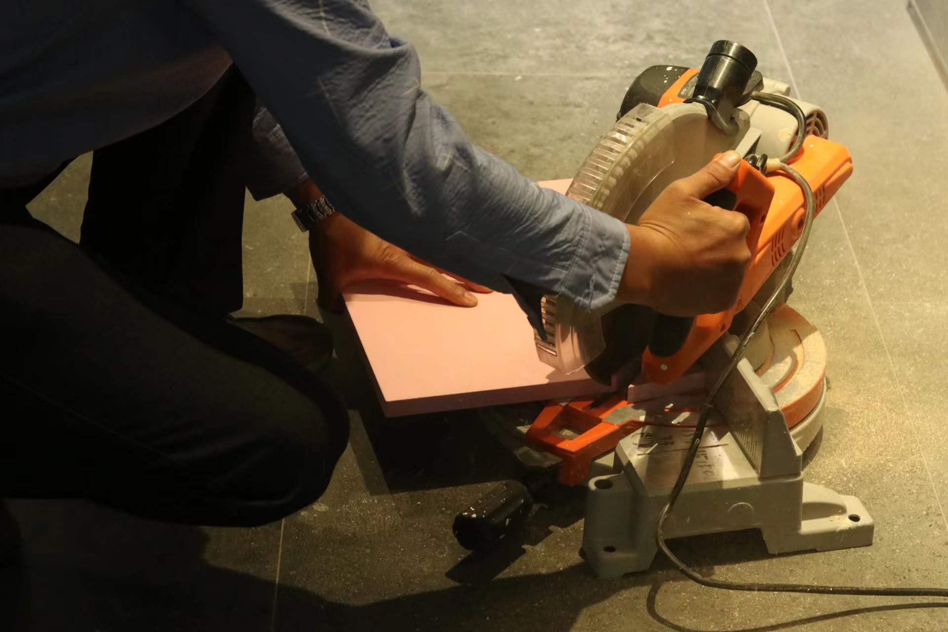 為測試康醛板的抗變形、防潮能力等,小編在現(xiàn)場進行了多個實驗。測評現(xiàn)場,卡諾亞工作人員取出一塊完整的康醛板,并將其切割成小塊??梢钥匆姡宀牡那懈羁谔幖y理清晰,與普通顆粒板稍有不同。切割之后,板材并未釋放半點兒異味。