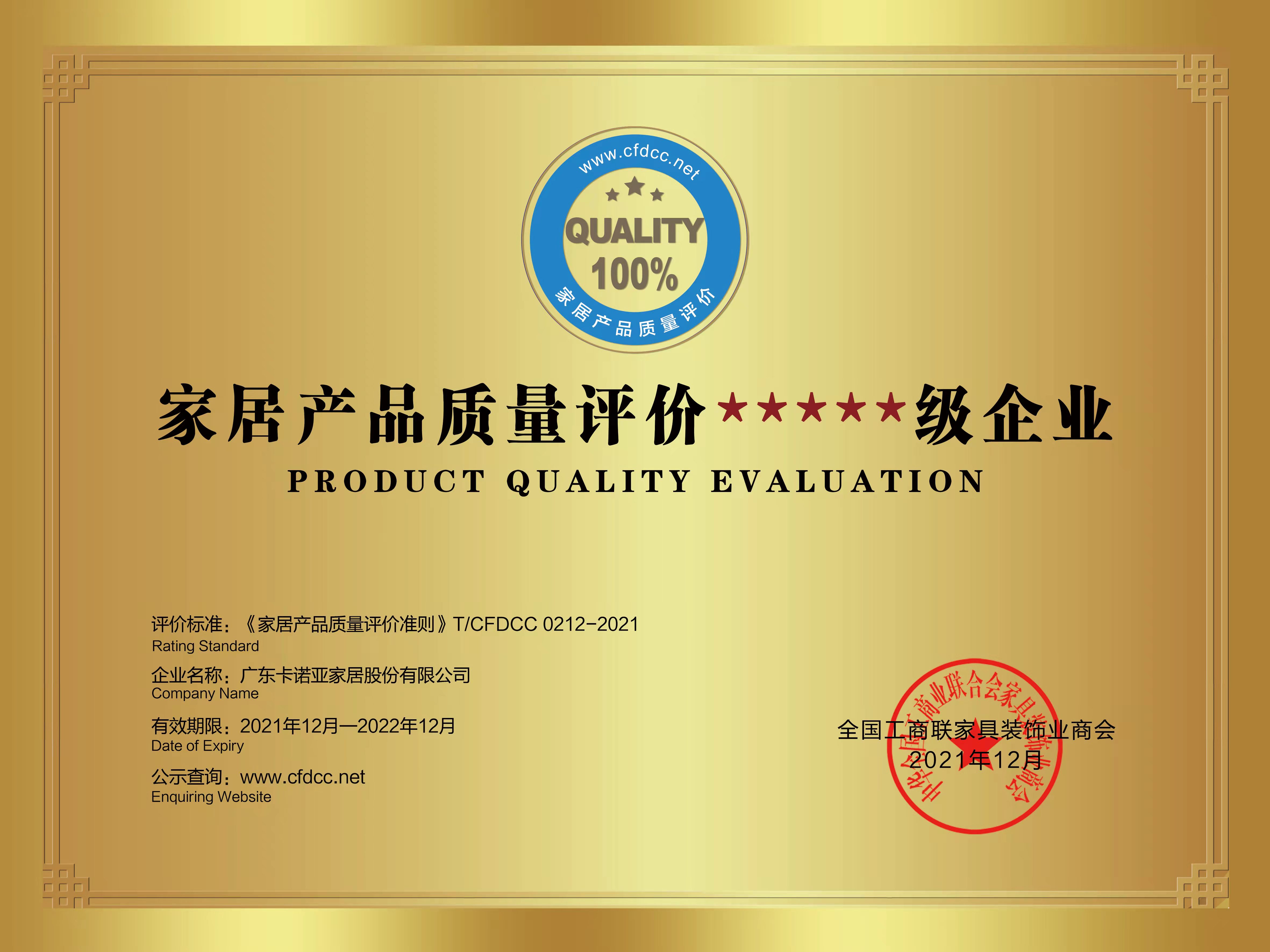 近日,經(jīng)全國工商聯(lián)家具裝飾業(yè)商會的嚴(yán)格評審,卡諾亞被評定為“家居企業(yè)信用評價(jià)5A級企業(yè)”以及“家居產(chǎn)品質(zhì)量評價(jià)五星級企業(yè)”,這是行業(yè)與市場對卡諾亞誠信經(jīng)營、堅(jiān)守品質(zhì)與貼心服務(wù)的認(rèn)可和贊譽(yù)。