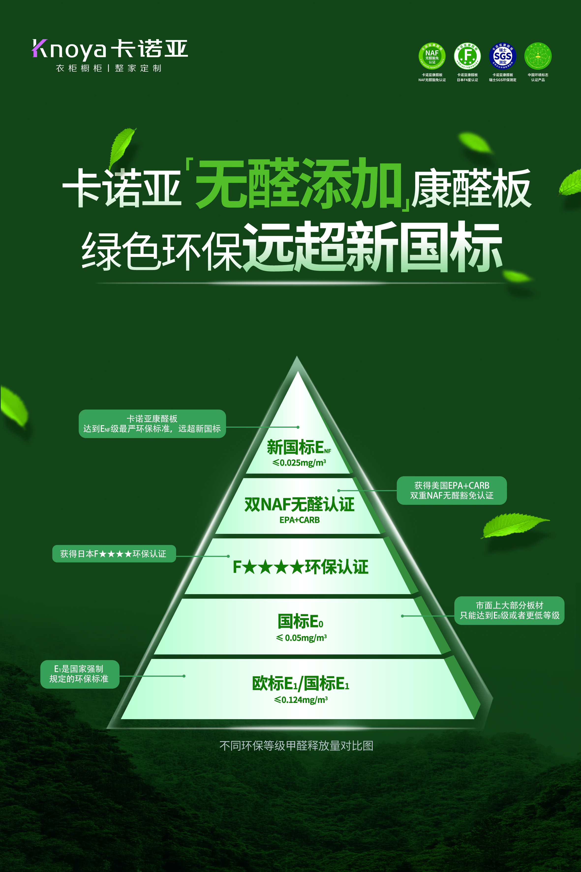 卡諾亞除了在生產(chǎn)端融入綠色發(fā)展基因,還在消費端積極引導(dǎo)普及綠色環(huán)保家居理念。在全國近千家品牌專賣店,卡諾亞大力普及高顏高品康醛整家套餐,以更具性價比的優(yōu)勢,讓健康家居走進(jìn)更多的家庭?;谙M者對環(huán)保健康的高需求,卡諾亞康醛整家套餐選用的是達(dá)到新國標(biāo)最高環(huán)保等級ENF級的康醛板,甲醛釋放量≤0.025mg/m³,可大面積使用于室內(nèi),不僅以無醛添加更環(huán)保、握釘力強更耐久、靜曲強度高更牢固等優(yōu)勢,刷新了消費者對于環(huán)保板材的認(rèn)知,更獲得美國雙NAF無醛豁免認(rèn)證+日本F★★★★環(huán)保認(rèn)證+瑞士SGS權(quán)威認(rèn)證,卡諾亞用國際品質(zhì)、本土價位推廣普及環(huán)保家居,依靠無醛添加的高品質(zhì)產(chǎn)品,帶來一種更加健康和綠色的高品質(zhì)生活。