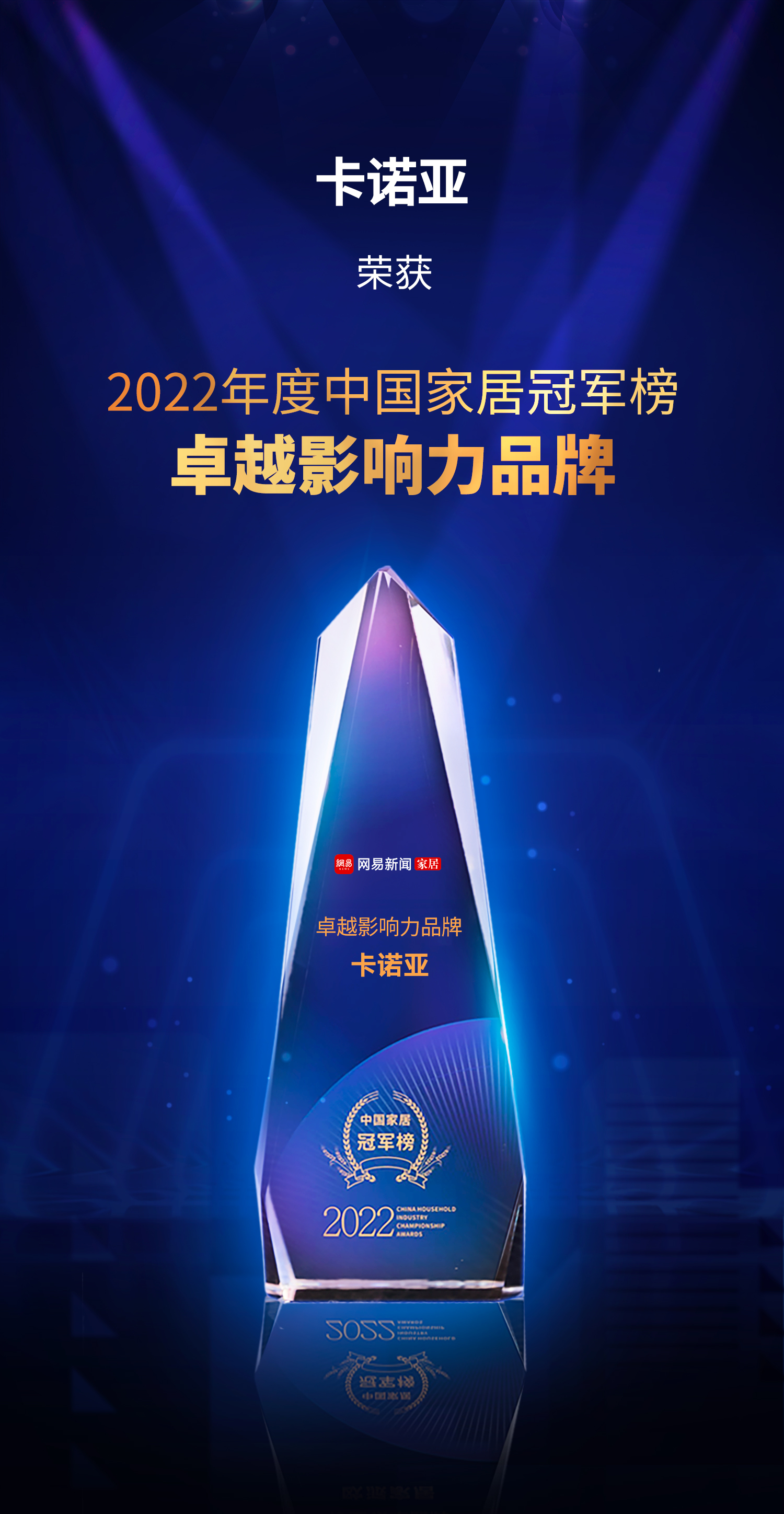 致敬卓越|卡諾亞榮膺2022中國家居冠軍榜卓越影響力品牌大獎(jiǎng)